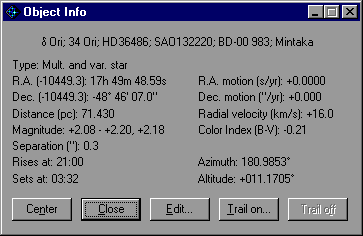 | Closeup of the Orion's Belt |