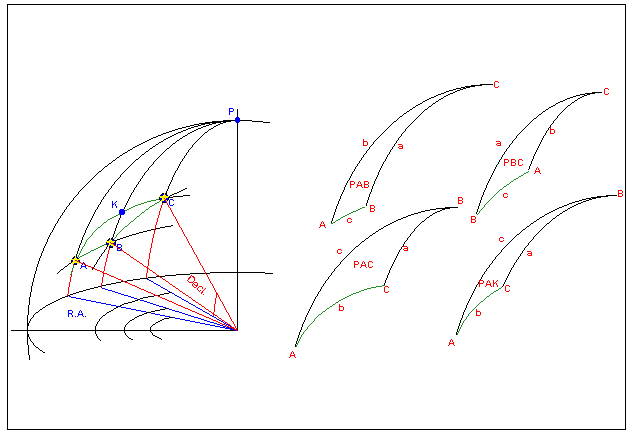 | Spherical model: coordinates and triangles |